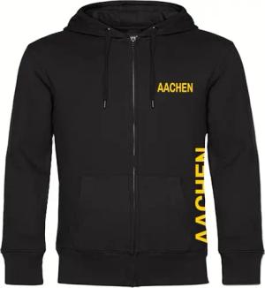 Kapuzen Sweatshirt Jacke - Aachen - Brust & Seite - Druck gelb - Sweat Größe XXL schwarz