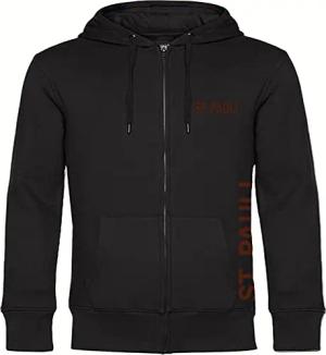 Kapuzen Sweatshirt Jacke - St. Pauli - Brust & Seite - Druck braun - Sweat Größe M schwarz