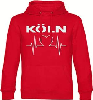 Kapuzen Sweatshirt - Köln - Herzschlag - Druck weiß - Hoodie Größe M rot