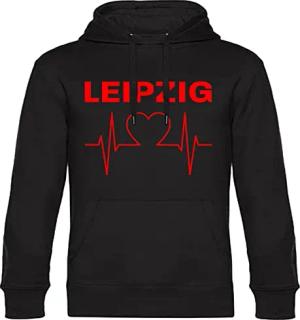 Kapuzen Sweatshirt - Leipzig - Herzschlag - Druck rot - Hoodie Größe XL schwarz