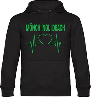 Kapuzen Sweatshirt - Mönchengladbach - Herzschlag - Druck grün - Hoodie Größe 3XL schwarz