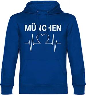 Kapuzen Sweatshirt - München blau - Herzschlag - Druck weiß - Hoodie Größe XXL blau
