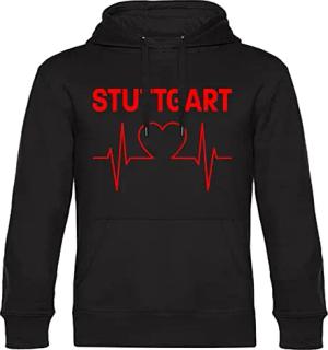 Kapuzen Sweatshirt - Stuttgart - Herzschlag - Druck rot - Hoodie Größe M schwarz