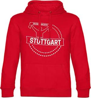 Kapuzen Sweatshirt - Stuttgart - Brust & Seite - Druck weiß - Hoodie Größe S rot