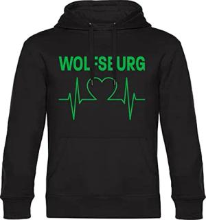 Kapuzen Sweatshirt - Wolfsburg - Herzschlag - Druck grün - Hoodie Größe XXL schwarz