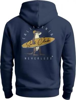 Herren Hoodie Backprint California Surfing Print Otter mit Surfboard Grafik Kapuzen-Pullover Männer Fashion Streetstyle Navy 4XL