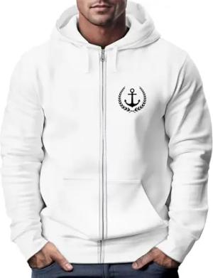 Herren Sweatjacke mit Kapuze Zip-Hoodie Motiv Anker Meer Boot Männer Fashion Streetstyle weiß XS