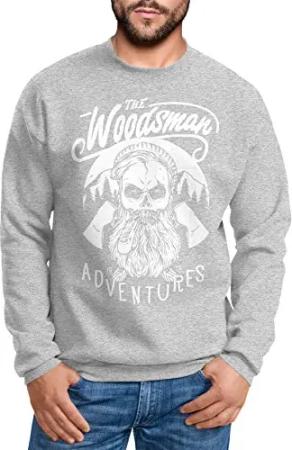 Herren Sweatshirt Lumberjack Woodsman Hipster Bart Skull Totenkopf Pullover für Männer grau XXL