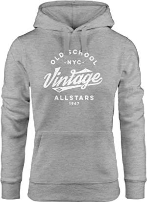 Hoodie Damen College Style Schriftzug Oldschool Vintage Allstars Kapuzen-Pullover Fashion Streetstyle grau L