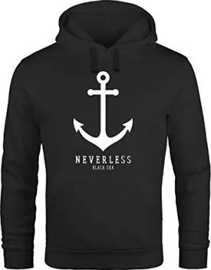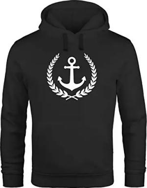 Hoodie Herren Anker Nautical Sailor Segeln Kapuzen-Pullover Männer schwarz L
