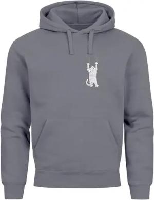 Hoodie Herren Aufdruck Katze Cat Logo lustig Kapuzen-Pullover Männer Fashion Streetstyle Convoy Grey XL