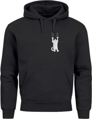 Hoodie Herren Aufdruck Katze Cat Logo lustig Kapuzen-Pullover Männer Fashion Streetstyle schwarz L