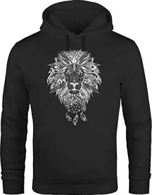 Hoodie Herren Aufdruck Löwe Boho Style Atzekenmuster Traumfänger Ethno-Print Kapuzen-Pullover Männer schwarz S