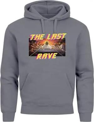 Hoodie Herren Aufdruck Techno The Last Rave Parodie Das letzte Abendmahl Jesus Fashion Streetstyle Convoy Grey L