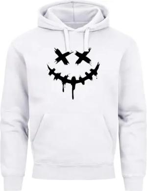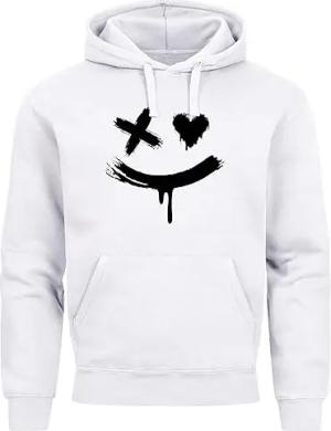 Hoodie Herren Bedruckt Techwear Fashion Streetstyle Smiling Face Smile Trend Print Aufdruck weiß M