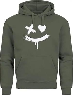 Hoodie Herren Bedruckt Techwear Fashion Streetstyle Smiling Face Smile Trend Print Aufdruck Oliv S