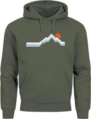 Hoodie Herren Berg Wandern Natur Outdoor Aufdruck Print Muskelshirt Fashion Streetstyle Oliv XS