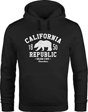 Hoodie Herren California Republic Kalifornien Grizzly Bär Bear Aufdruck Print Kapuzen-Pullover Männer schwarz 5XL
