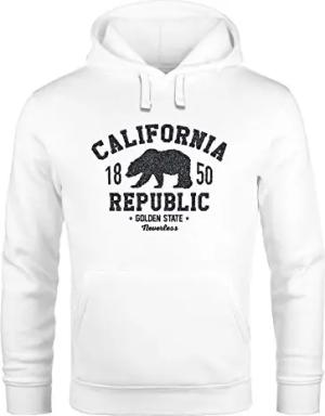 Hoodie Herren California Republic Kalifornien Grizzly Bär Bear Aufdruck Print Kapuzen-Pullover Männer weiß 4XL