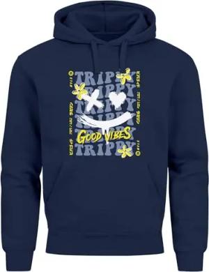Hoodie Herren Print Drip Face Smile Neon Aufdruck Motiv Kapuzenpullover Techwear Fashion Streetstyle Navy S