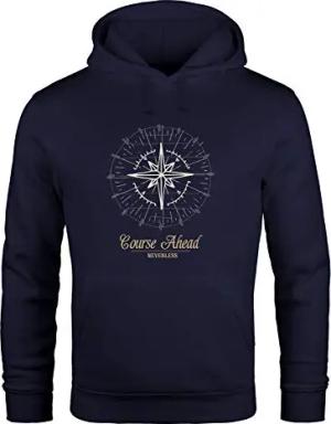 Hoodie Herren Kompass Windrose Navigator Segeln Kapuzenpullover Sweater Männer Navy L