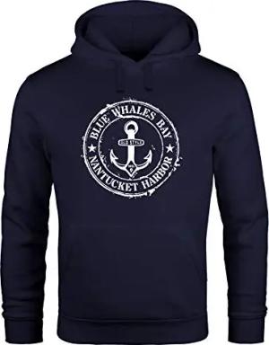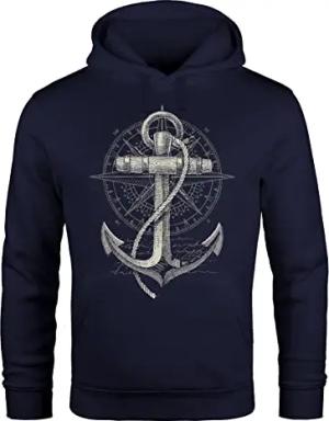 Hoodie Herren maritimes Anker Motiv Anchor Print Vintage Stil Kapuzen-Pullover Männer Navy S