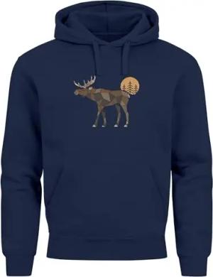 Hoodie Herren mit Aufdruck Polygon Elch Outdoor Motive Wandern Natur Wald Fashion Navy 4XL