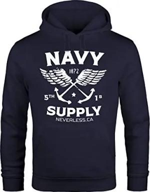 Hoodie Herren Motiv Maritim Nautical Design Schriftzug Navy Supply Anker mit Flügeln Kapuzen-Pullover Männer Navy XXL