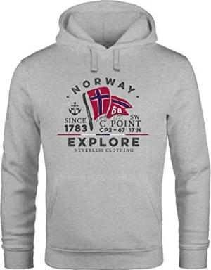 Hoodie Herren Norway Explore norwegische Flagge Norwegen Kapuzen-Pullover Männer grau 4XL