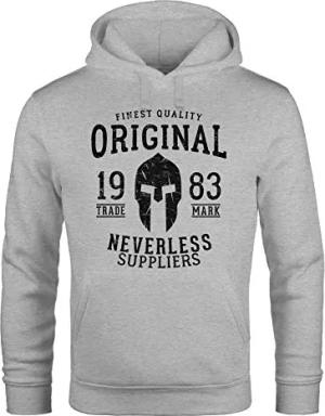 Hoodie Herren Original Gladiator Sparta Helm Athletic Vintage Kapuzen-Pullover Männer grau XS
