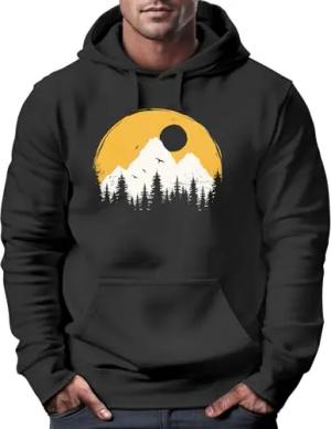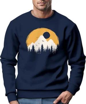 Sweatshirt Herren Wandern Berge Natur Aufdruck Print Outdoor Fashion Rundhals Pullover Schwarz XL