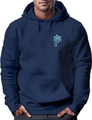 Hoodie Herren Palme Logo Print Sommer Badge Emblem Minimal Line Art Fashion Streetstyle Navy-blau 4XL