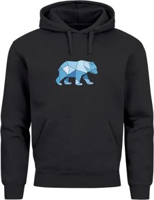 Hoodie Herren Bär Aufdruck Grafik Outdoor Polygon Motive Printshirt Natur Fashion Streetstyle Indigo Blue M