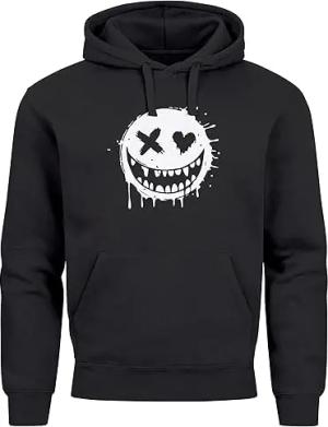 Hoodie Herren Print Aufdruck Motiv Smiling Drip Face Männer Fashion Streetstyle schwarz 4XL