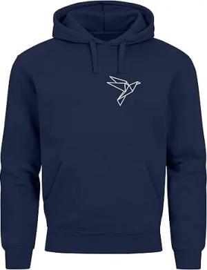 Hoodie Herren Print Aufdruck Vogel Origami Polygon Brustprint Logo Fashion Streetstyle Navy 4XL