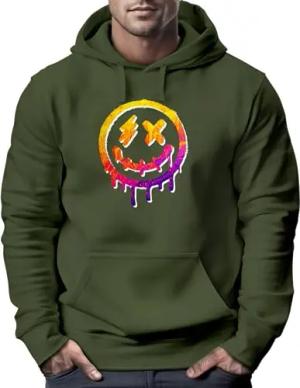 Hoodie Herren Print Drip Face Smile Neon Aufdruck Motiv Kapuzenpullover Techwear Fashion Streetstyle Oliv XXL