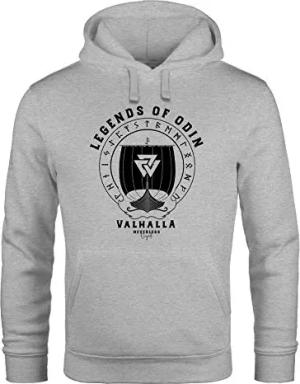 Hoodie Herren Print Legends of Odin Valhalla Vikings Wikinger Kapuzen-Pullover Männer grau L