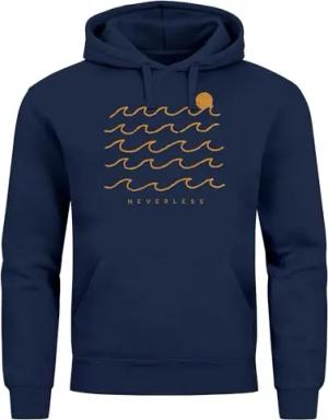 Hoodie Herren Print Minimalismus Wellen Sonne Meer Aufdruck Kapuzen-Pullover Männer Fashion Streetstyle Navy XL