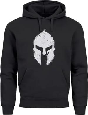Hoodie Herren Print Sparta-Helm Aufdruck Gladiator Krieger Warrior Spartaner Fashion Streetstyle schwarz -Weiss M