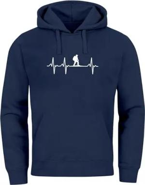Hoodie Herren Print Wanderer Herzschlag Outdoor Natur Motiv Kapuzen-Pullover Männer Fashion Streetstyle Navy S