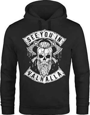 Hoodie Herren See You in Valhalla Wikinger Totenkopf Skull Print Kapuzen-Pullover Männer Fashion Streetstyle schwarz XXL
