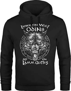 Hoodie Herren Spruch Lieber EIN Wolf Odins als EIN Lamm Gottes Wikinger nordische Mythologie Fashion Streetstyle schwarz 5XL