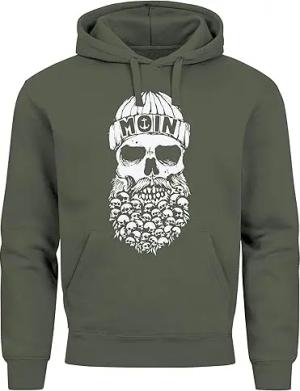 Hoodie Herren Totenkopf Nordisch Moin Hamburg Dialekt Skull Anker Fashion Streetstyle Oliv XL
