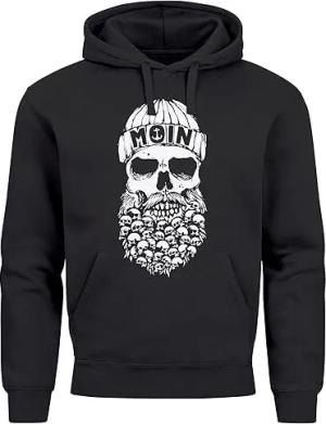 Hoodie Herren Totenkopf Nordisch Moin Hamburg Dialekt Skull Anker Fashion Streetstyle schwarz M