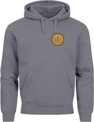Hoodie Herren Wald Bäume Logo Badge Naturliebhaber Outdoor Fashion Streetstyle Convoy Grey L