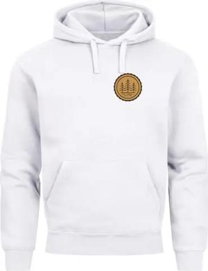 Hoodie Herren Wald Bäume Logo Badge Naturliebhaber Outdoor Fashion Streetstyle weiß XS