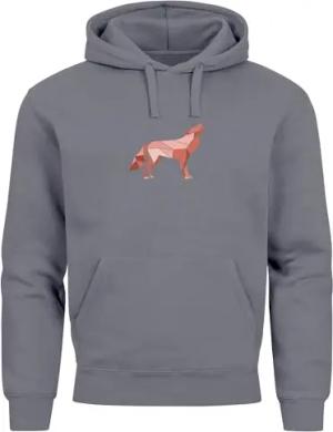 Hoodie Herren Wolf Polygon Tiere Print Aufdruck Geometrie Kapuzen-Pullover Männer Fashion Streetstyle Convoy Grey M