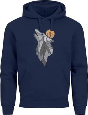 Hoodie Herren Wolf Print Wald Wildnis Outdoor Natur Tiermotiv Fashion Streetstyle Navy XL