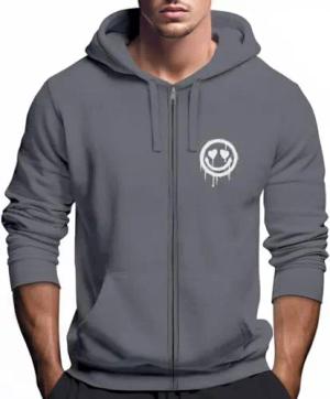 Sweatjacke Herren Print Smile Drip Face Aufdruck Zip-Hoodie mit Kapuze Männer Fashion Streetstyle Convoy Grey XXL