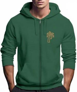Sweatjacke mit Kapuze Herren Print Palme Line Art Motiv Hoodie-Zipjacke Männer Fashion Streetstyle grün-gelb XXL
